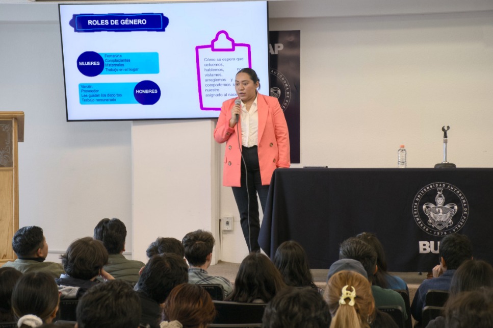 Hablar sobre los roles y estereotipos sociales, además de las modalidades y tipos de violencia que se presentan en cualquier etapa del noviazgo, así como las ideas del “amor romántico”, “el sacrificio por el otro” o la idealización, fueron algunos de los conceptos expuestos por Diana Granada, de la Secretaría de Igualdad Sustantiva de Género del gobierno municipal, en su conferencia “Cómo prevenir la violencia en el noviazgo”, ante estudiantes de esta facultad.